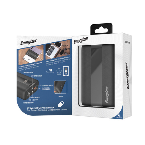شارژر همراه انرجایزر مدل UE30000PQ دارای یک تکنولوژی شارژ نوآورانه و جهانی است که سرعت شارژ را به حداکثر میرساند و قابلیت سازگاری با بیشتر دستگاهها را دارد. این پاوربانک با توجه به مشخصات دستگاه مورد استفاده از یک موتور سرعت دوبل که دارای فناوری پیشرفته استفاده کرده و با استفاده از تکنولوژی PD و QC.3 باعث بالا بردن سرعت شارژ دستگاه میشود. از این محصول میتوان شارژ کردن برای تلفنهای هوشمند، رایانه لوحی و موارد دیگر استفاده کرد. Energizer UE30000PQ دارای ظرفیت 30000 میلیآمپر ساعت است که {هار خروجی مانند 3 USB-A هوشمند و 1 USB-C را دارد. فناوری USB-C Power Delivery به شما این امکان را میدهد تا iPhone8/8 Plus/X/XR/11/11Pro را تنها در 30 دقیقه از 0 تا 50 درصد شارژ کنید. همچنین پورت USB-C هوشمند از شارژ سریع برای سامسونگ، هواوی و سایر دستگاههای سازگار با سیستم عامل اندروید پشتیبانی میکند. نمایشگر LCD سطح باتری و وضعیت شارژ را در یک نگاه سریع نشان میدهد. Energizer UE30000PQ ظرفیت 30000 میلی آمپر ساعت UE30000PQ یک پاوربانک مناسب برای گوشی های هوشمند ، رایانه لوحی و موارد دیگر است. با توجه به اینکه در اینده نزدیک نسل جدید گوشیهای هوشمند با توان سرعت 22.5W به بالا شارژ میشود کمپانی انرجایزر با به کار گیری پیشرفته ترین تکنولوژی در پاور بانک دست به تولید اولین پاور بانک با توان خروجی 22.5W را در جهان زده که هم اکنون در ایران توسط شرکت داده پرداز رایانه متین عرضه میگردد البته این نکنه مهم که اگر با کابل اورجینال گوشی همراه خود استفاده نمیایید با این پاوربانک میتوانید به صورت سوپر فست شارژ که در گوشی های نسل جدید مانندOPPO -Huawei- iPhone-Samsung میباشد استفاده نمیایید این پاور بانک دارای سه ورودی میکرو یو اس بی - تایپ سی- لایتنینگ میباشداندازه این پاور بانک جوری طراحی شده که به راحتی قابل حمل بوده دارای نمایشگر ال سی دی پاور دلیوری 3 دارای پورت نارنجی رنگ برای شارژ کردن گوشی های فست شارژ هوآوی میباشد