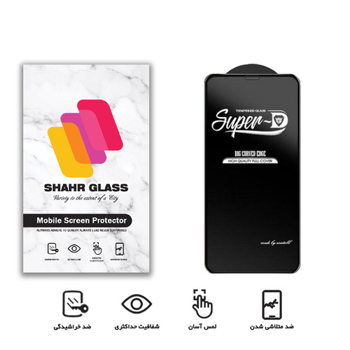 محافظ صفحه نمایش SUPER D به طور کامل صفحه نمایش گوشی شما را می پوشاند.به طوری که حاشیه ی محافظ صفحه،همرنگ تلفن همراه شما می باشد. این گلس تمام چسب به صورت شیشه ای طراحی شده که کمترین تاثیر منفی بر روی کیفیت صفحه نمایش شما نگذارد.جنس گلس سوپر D از ترکیب شیشه،آلومینیوم و سیلیکون ساخته شده است.این ترکیب باعث شده که در عین مقاومت و سختی در برابر ضربه و خط و خش،گلس نرمی باشد.