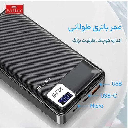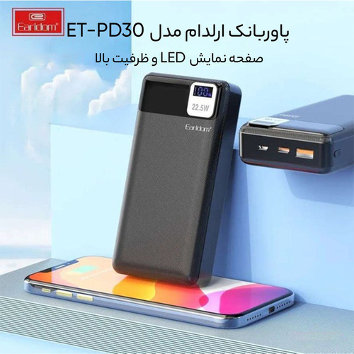 پاوربانک ارلدام مدل ET-PD30 ظرفیت 20000 میلی آمپر ساعت